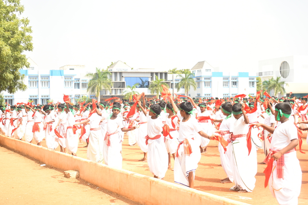 விழாவின் முக்கிய நிகழ்வாக, பள்ளி விளையாட்டு மைதானத்தில் 600 மாணவர்கள் ஒன்றிணைந்து ஜல்லிக்கட்டு காளை வடிவத்தை உருவாக்கினர். மேலும் 50 மாணவிகள் முளைப்பாரி சுமந்து வந்து கும்மி அடித்துப் பொங்கல் விழாவின் சிறப்பைப் பறைசாற்றினர்.