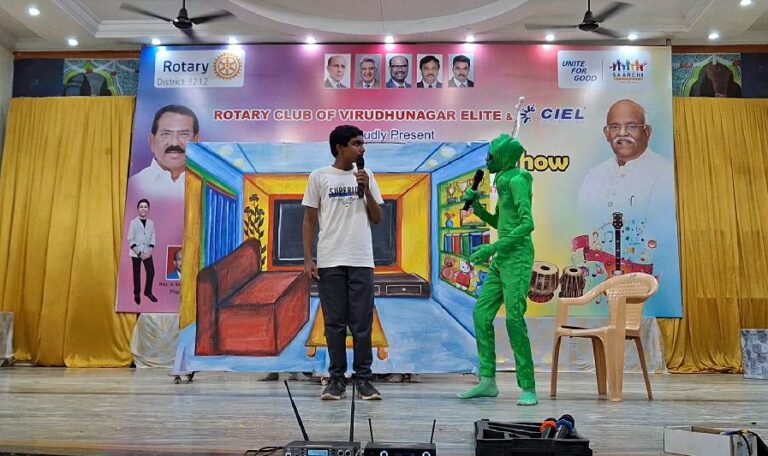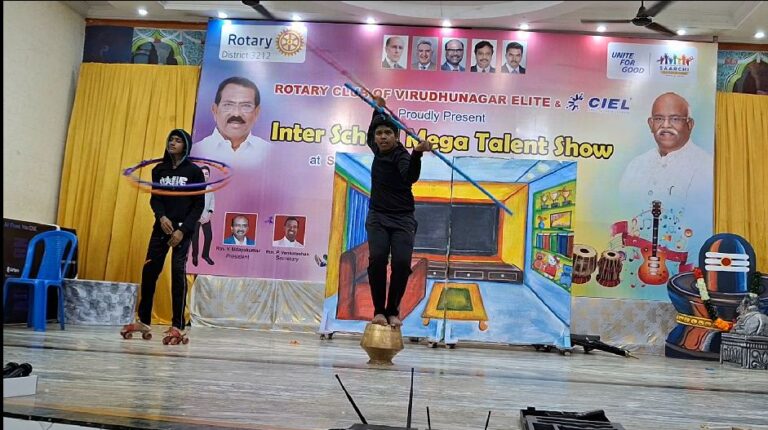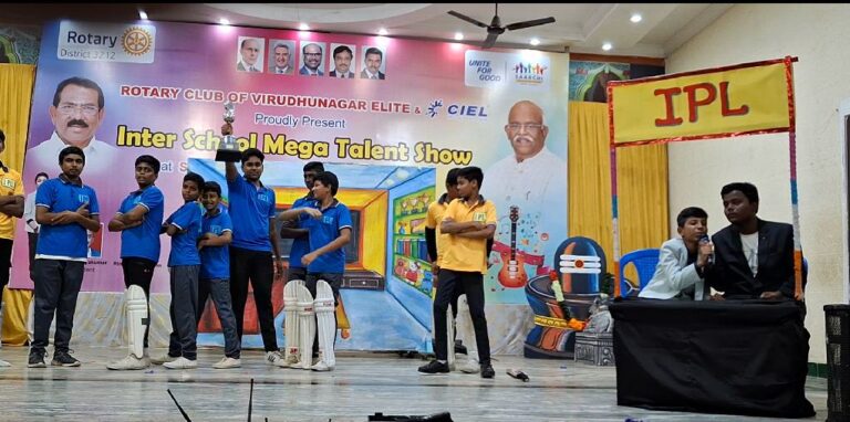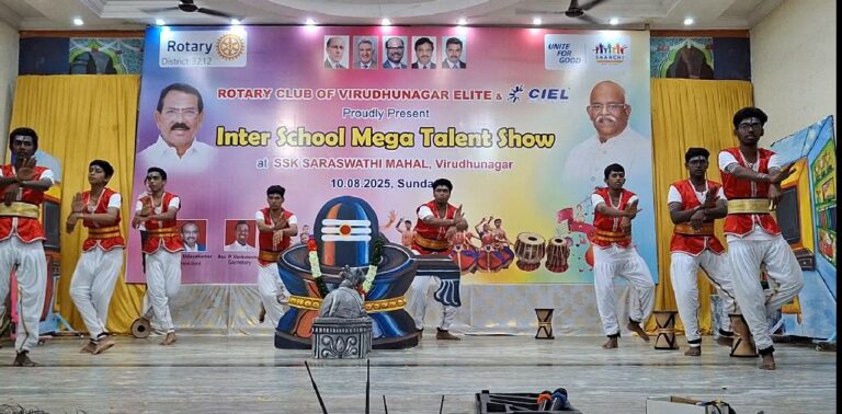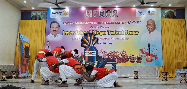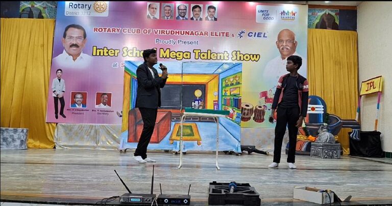 KVS EMS won the Champion of Champions trophy @ Inter School Mega Talent Show on 10th August 2025. The event was organised by the Rotary Club of Virudhunagar Elite at SSK Mahal, Virudhunagar. Seven schools took part in this event. A team of  40 students gave a vibrant & meaningful programme in just half an hour. Everyone admired their performance.