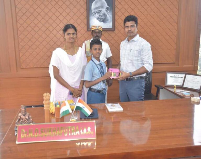 Master V. Palpandi of Class VII D from KVS EMS donated his one-year savings to the Virudhunagar District Collector, Dr. N.O. Sukhaputra, IAS towards the Sri Lanka Flood Relief Fund on 08.12.2025.