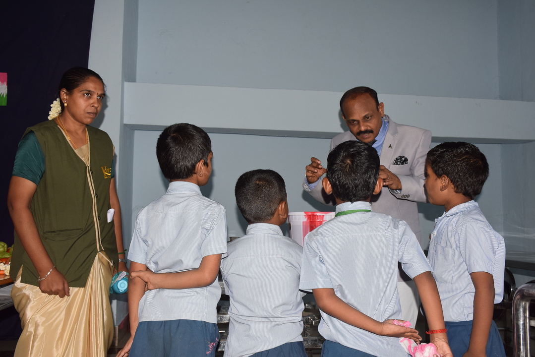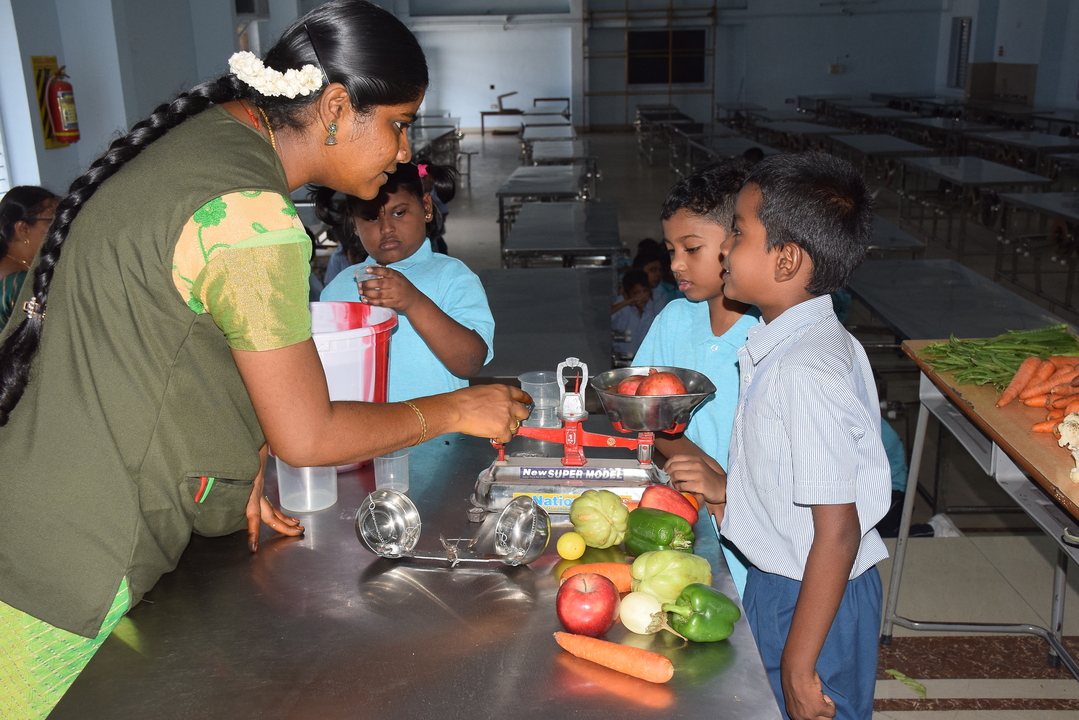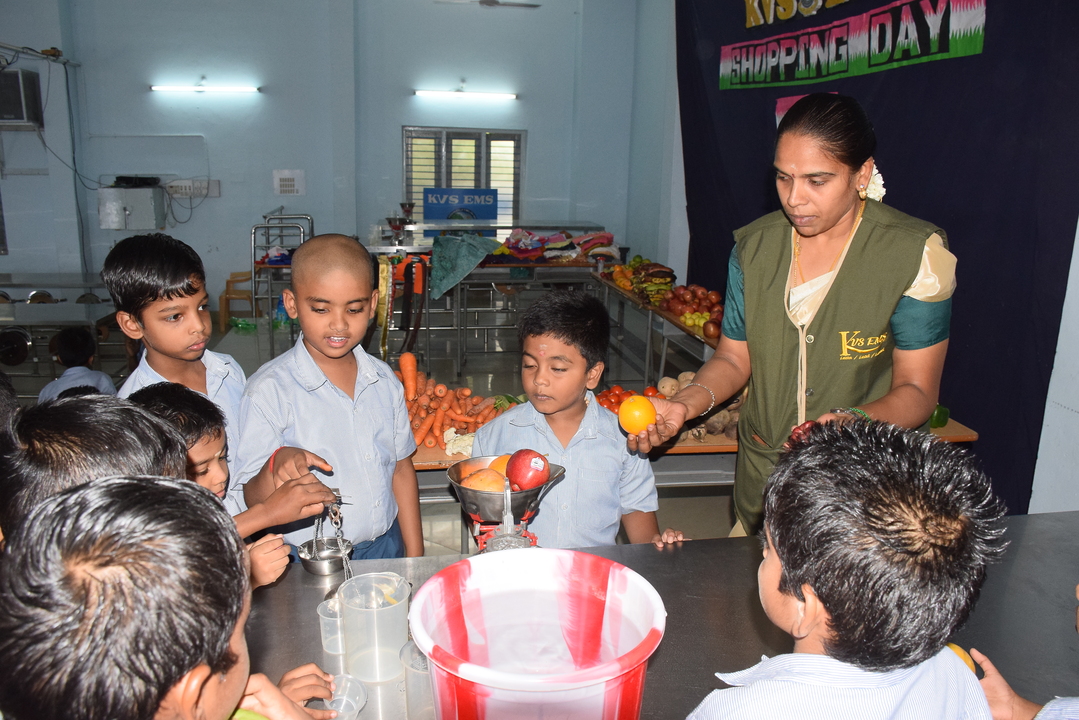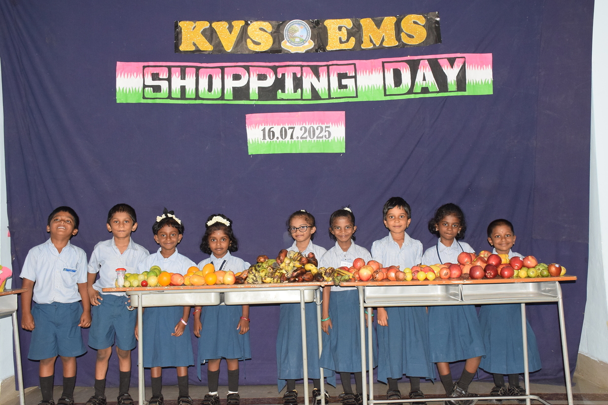 Shopping Day was held on 16th July 2025 for Classes 1 and 2 students. They learned about kilograms, liters & meters through brought fruits, vegetables, empty bottles, cloth pieces & shopping lists. The activity improved their speaking, vocabulary & practical math skills.