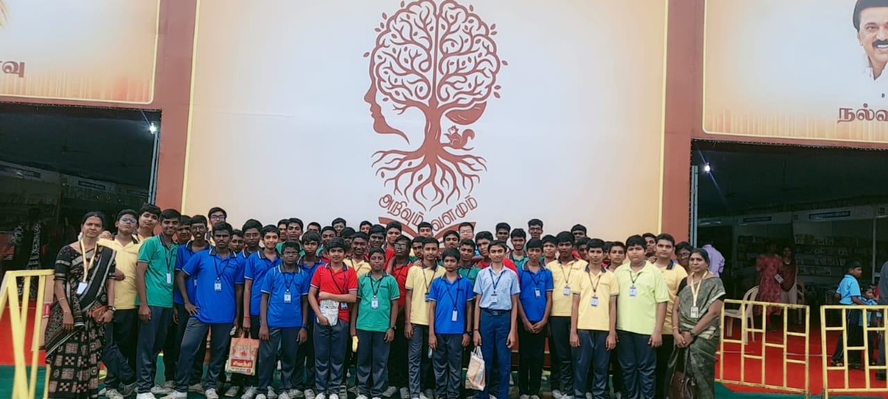 To encourage students to explore a wide range of books and develop reading habits, 50 interested students from Classes IX and XI were taken to the 4th Book Festival organized by the Tamil Nadu Government @ KVS Higher Secondary School, Madurai Road, Virudhunagar, on 22.11.2025. Students visited various stalls, explored different genres of books,interacted with exhibitors & purchased books of their interest.