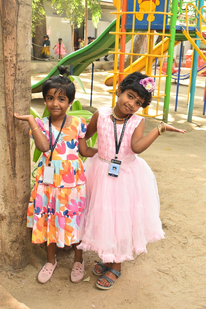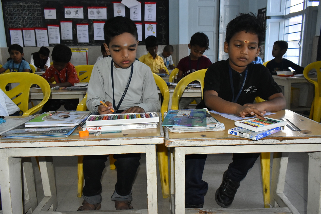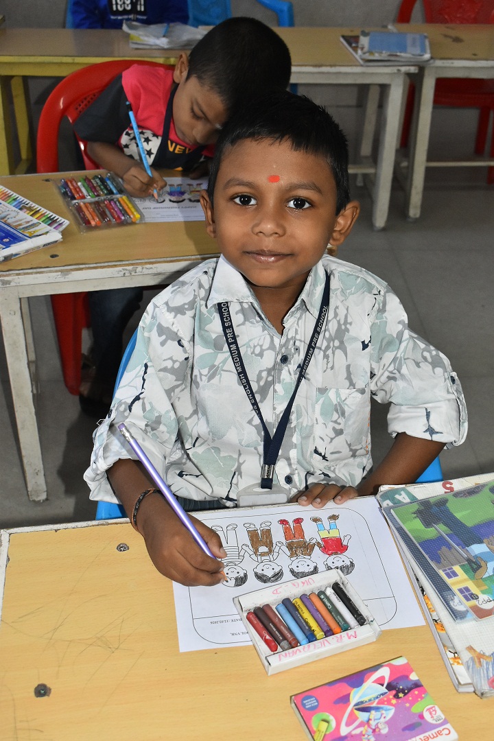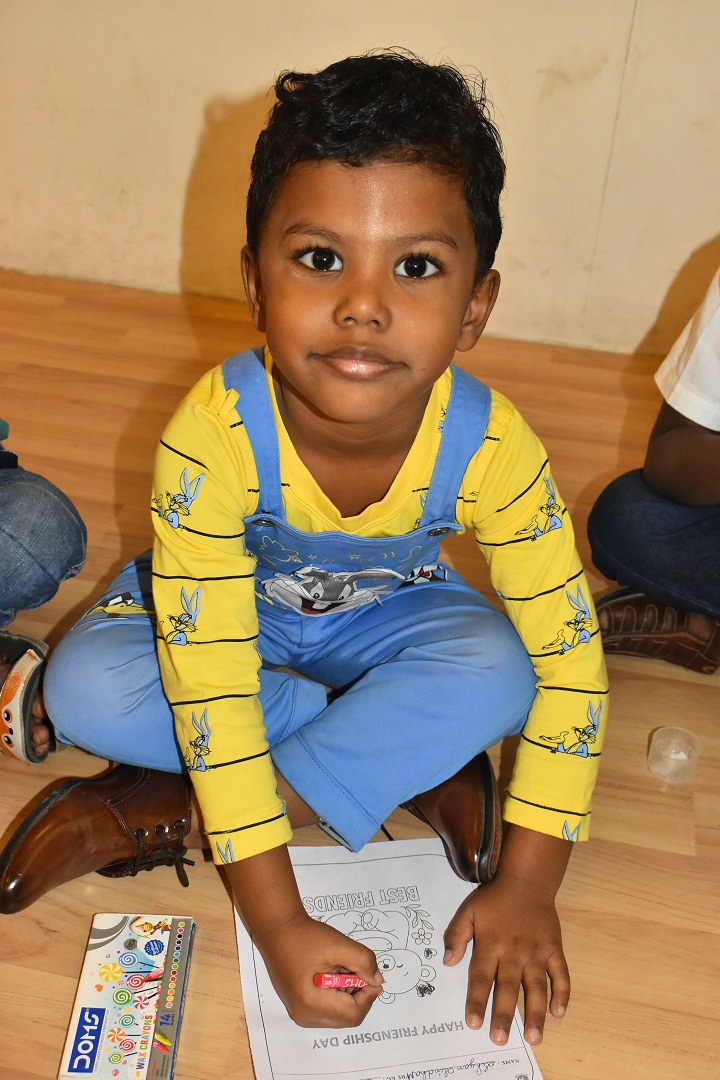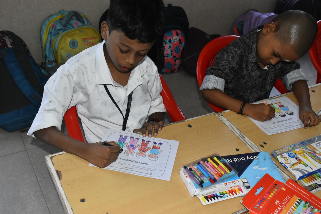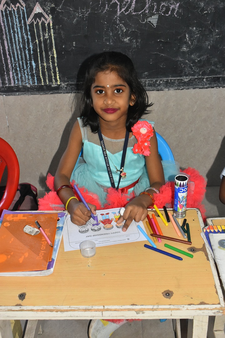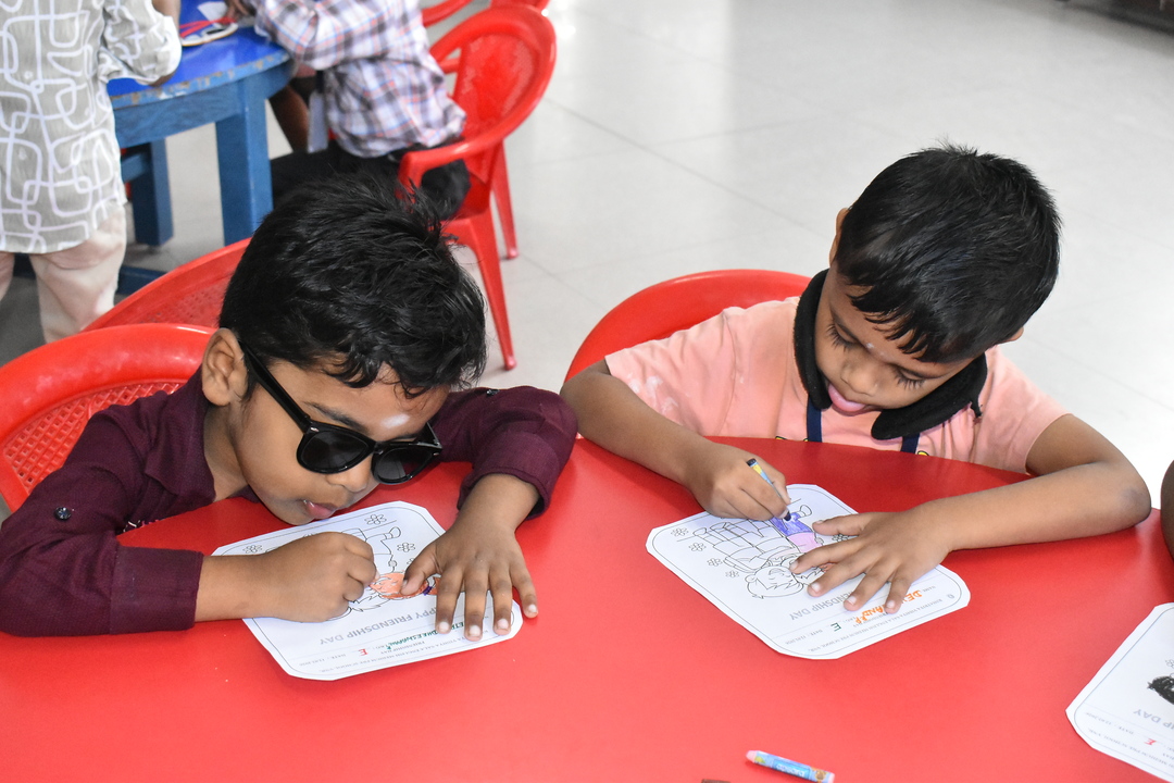 Pre-KG, LKG and UKG students participated in a colouring activity where they joyfully coloured creative pictures depicting friendship.