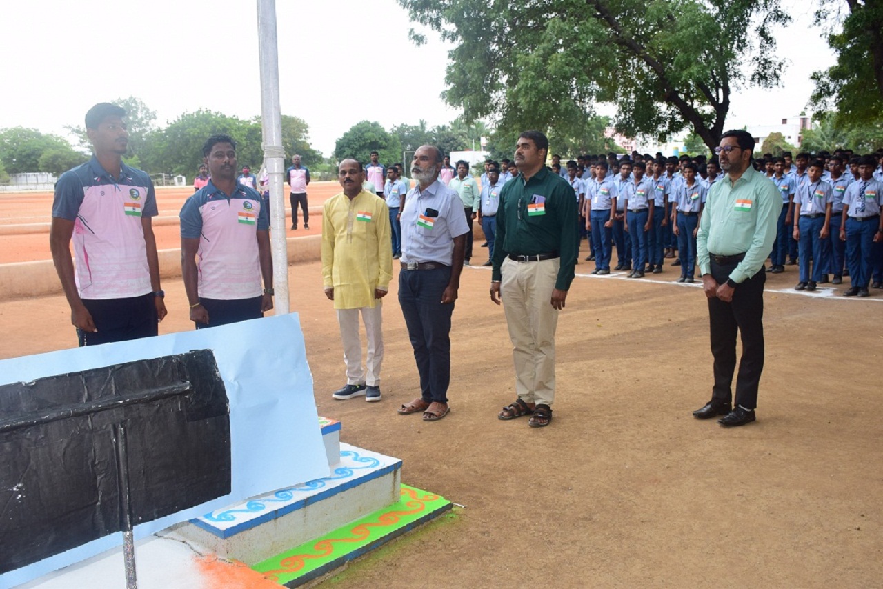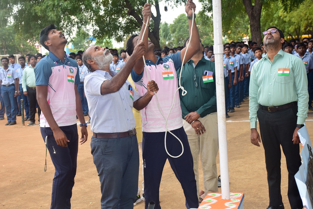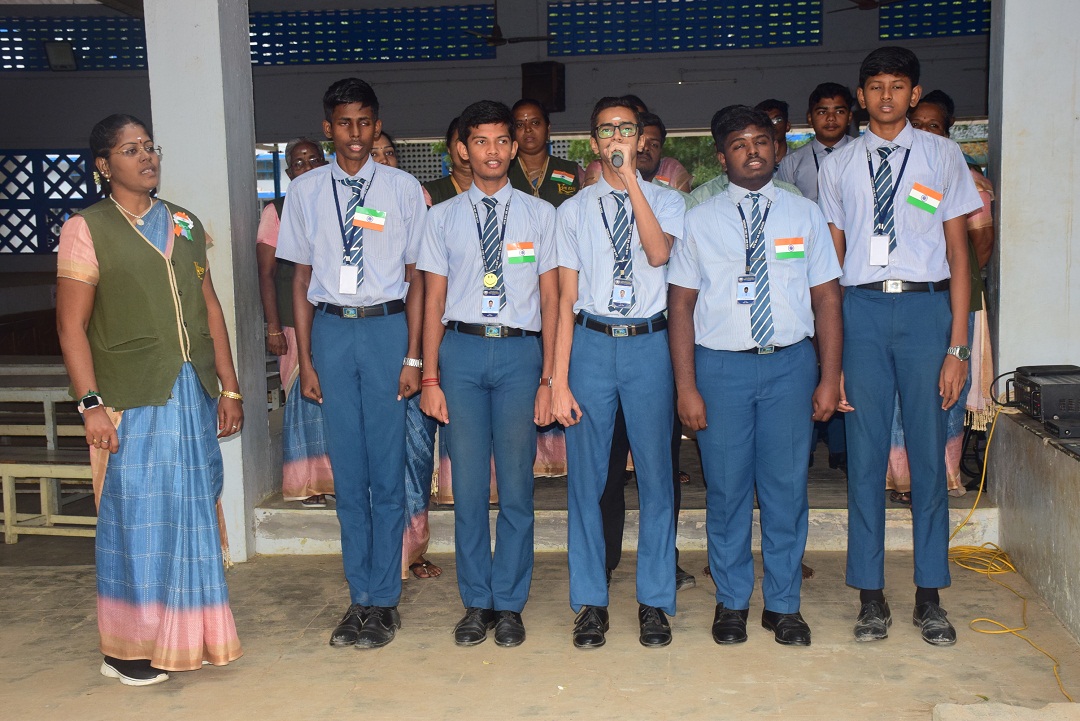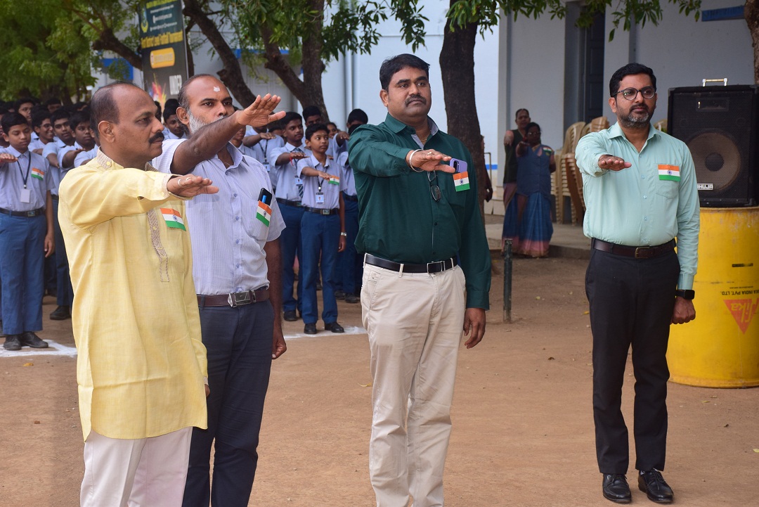 The National Flag was unfurled by Mr. N. D. Shankar, President of KVS EMS, in the presence of Mr. S. Sakthi Babu, Vice President of KVS EMS, Mr. P. Rajasekaran, Senior Principal & Mr. T. S. Prasanth, Principal.
