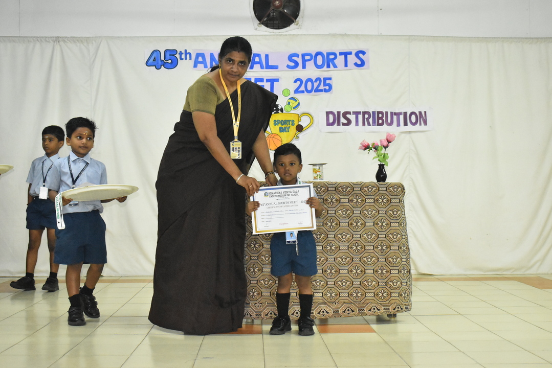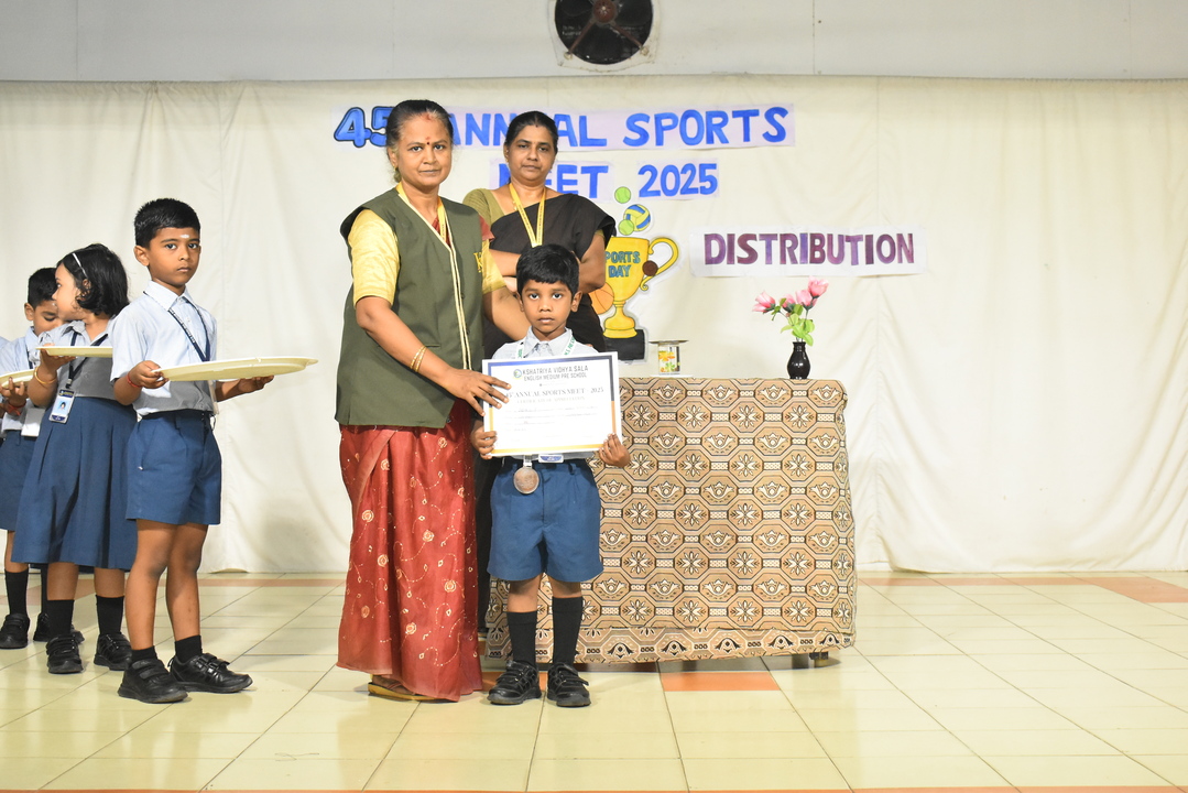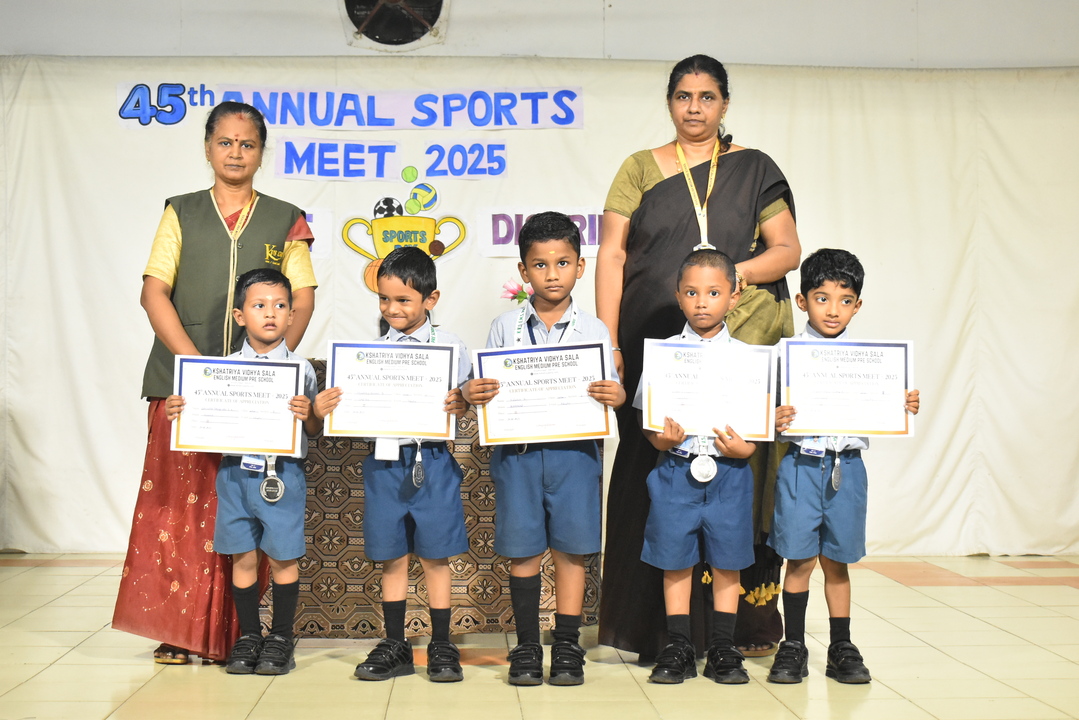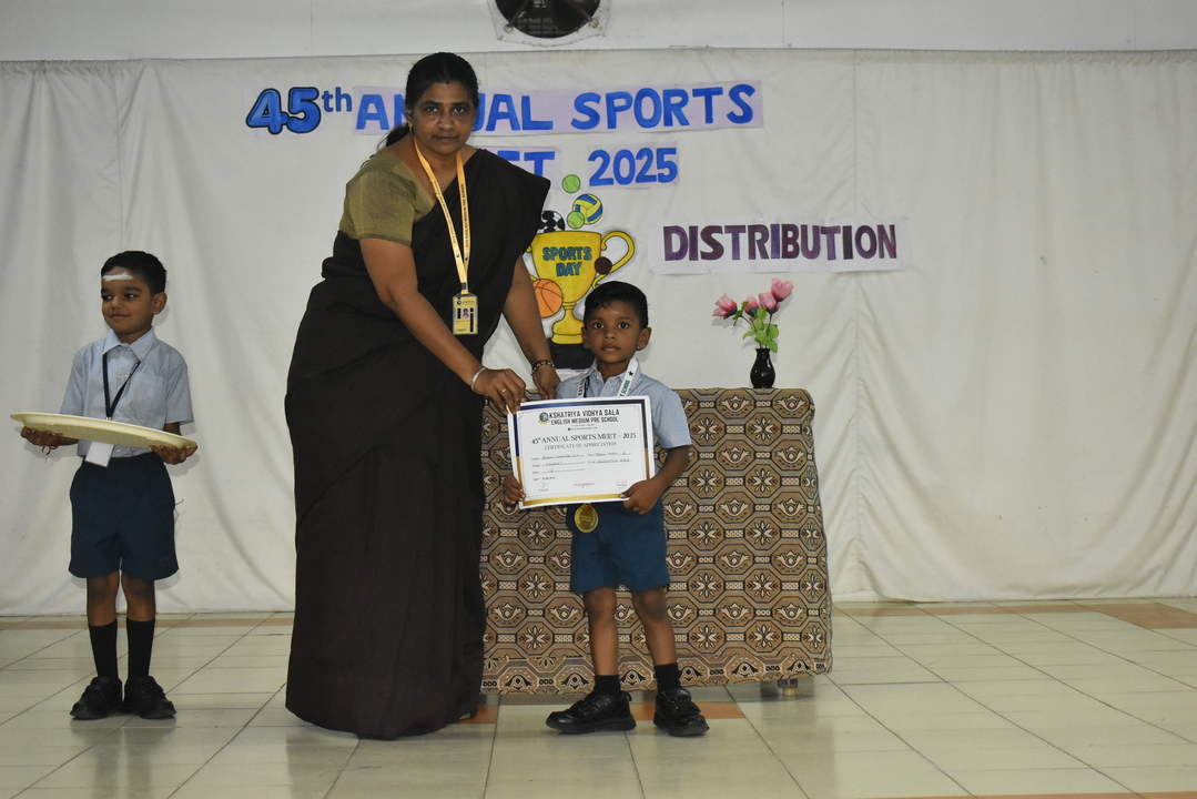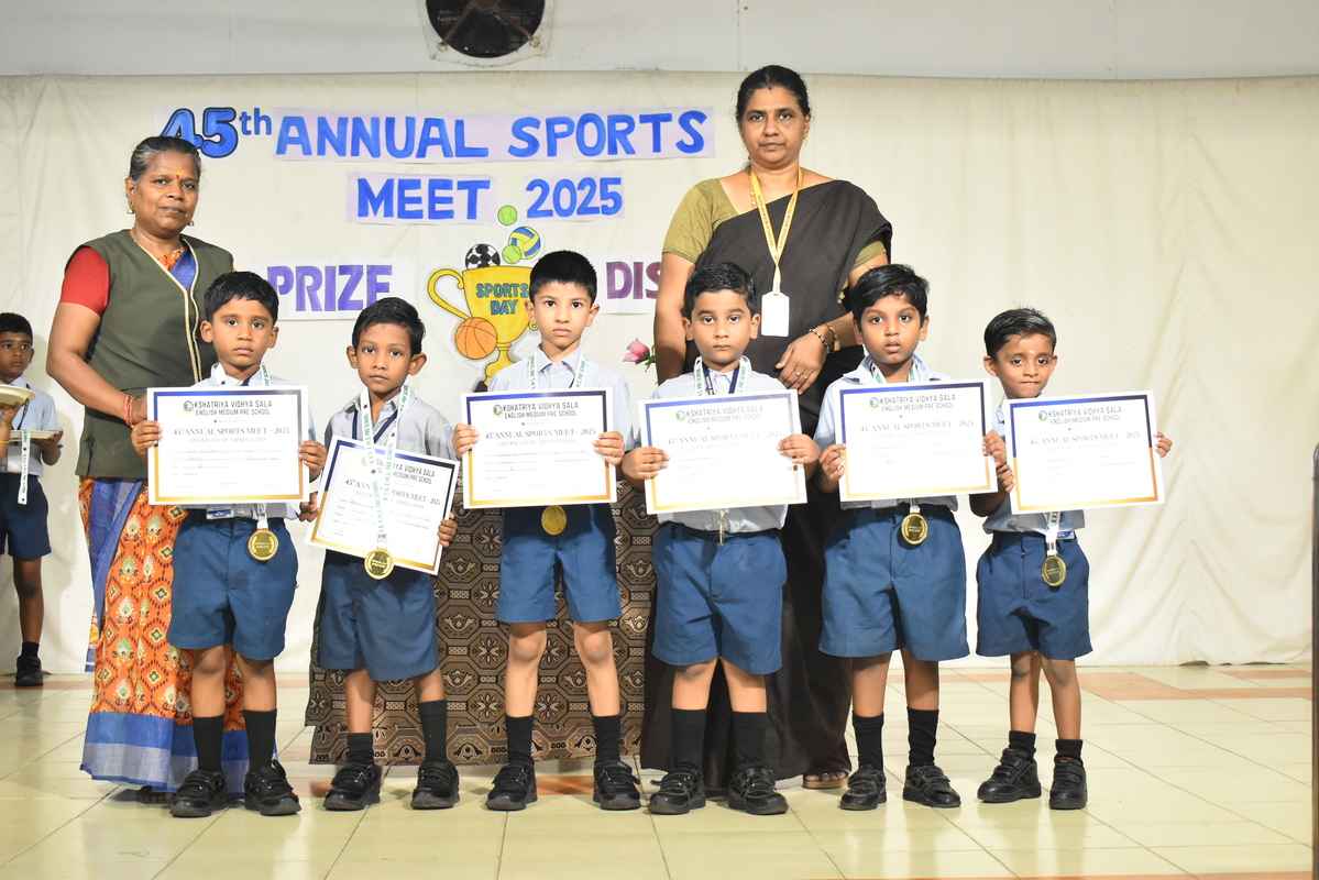 Sports Day Prize Distribution @ Pre School September 9, 2025 Kshatriya Vidhya Sala 0 Children from Pre-KG, LKG & UKG proudly received their medals with bright smiles. The stage was filled with cheers as our little champs shone with happiness.