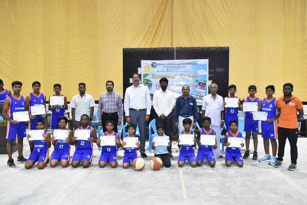 KVS EMS held a Sports Summer Camp from 24th April to 17th May 2025. A total of 248 students from Classes 2 to 12 took part in the camp. They attended morning and evening sessions with expert coaches. The Principal handed out the T-shirts to all students and encouraged them. The students were happy and felt united. The camp ended with a Valedictory Ceremony. Chief Guest Mr. S. Kumaramanimaran, District Sports Officer, gave certificates. The camp promoted fitness, teamwork & sportsmanship.