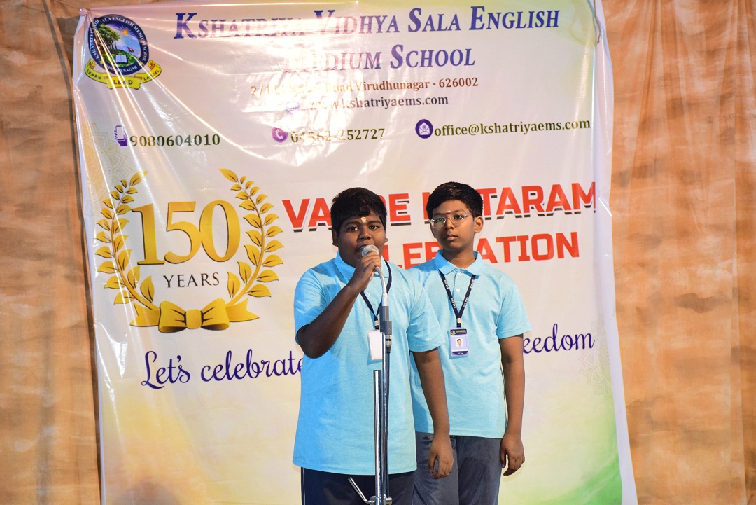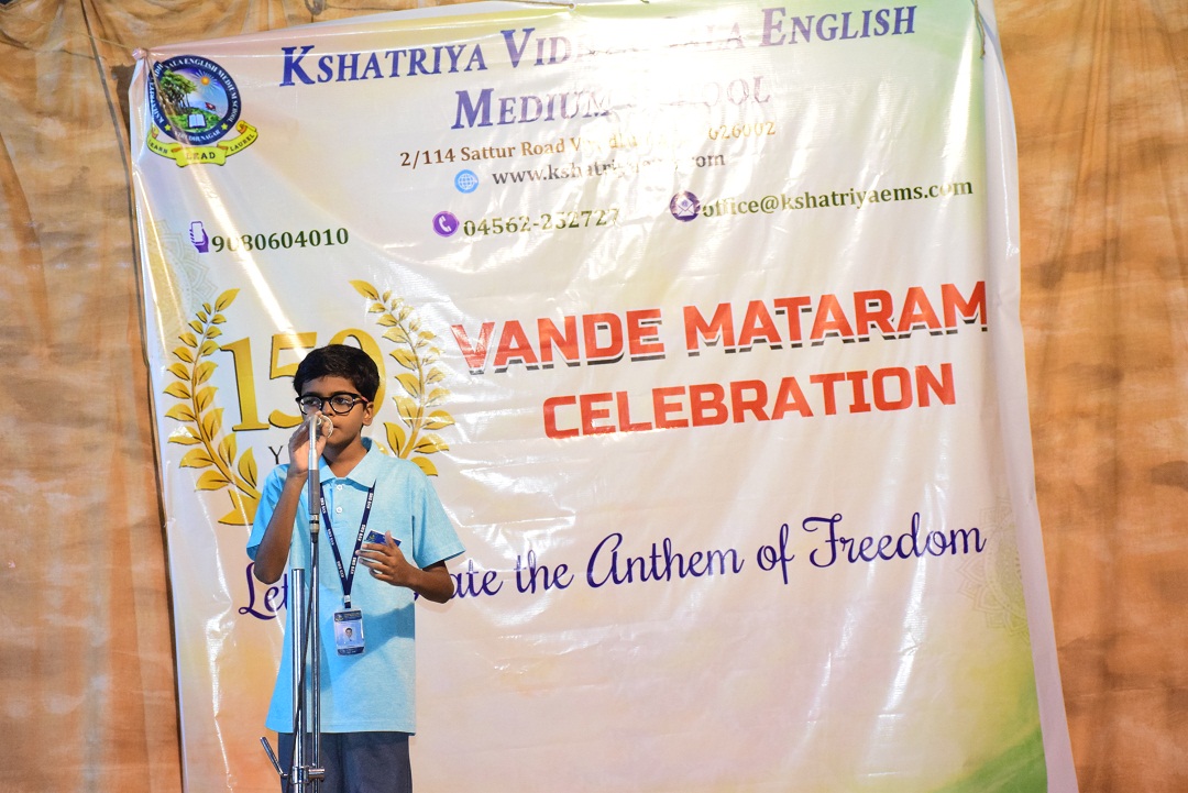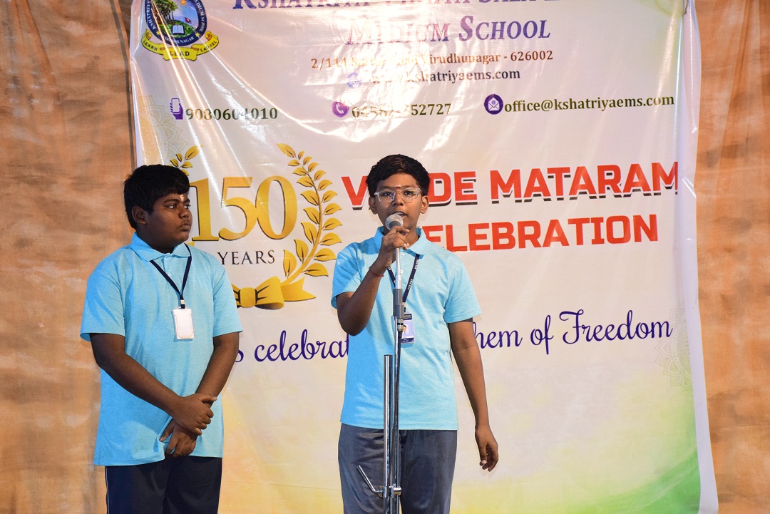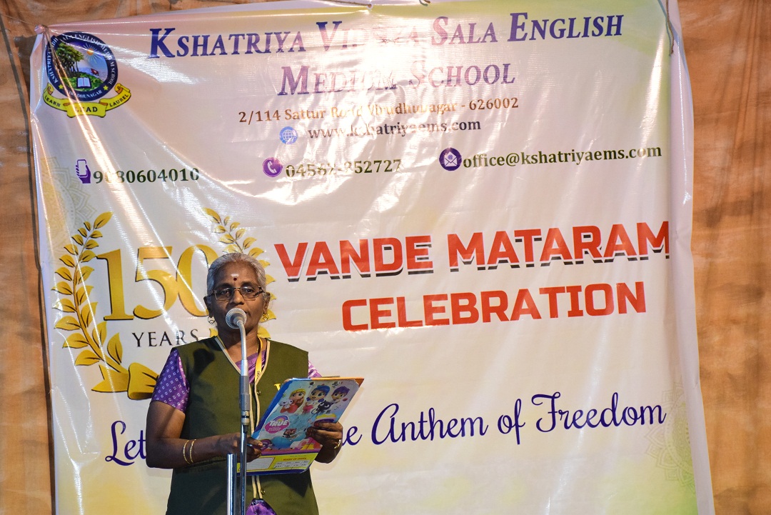 On this meaningful occasion, Mrs. T. Subasri, Social Science Teacher, highlighted the historical significance and importance of “Vande Mataram”, followed by thought-provoking speeches by students on the topic “Our Motherland.”